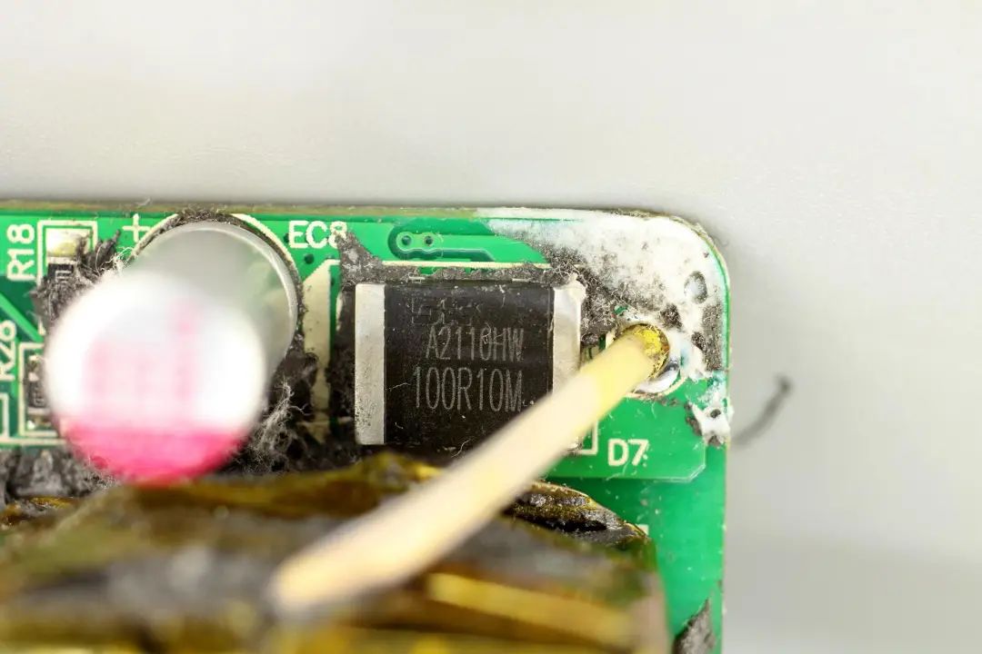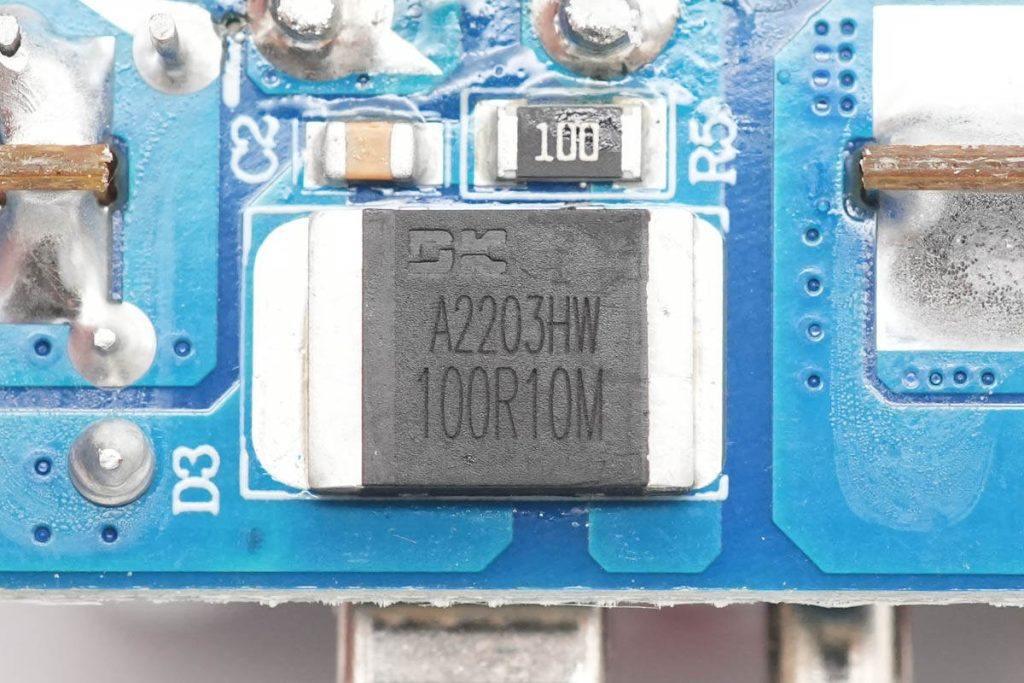 同步整流芯片來自東科,絲印100R10M,實際型號為DK5V100R10M,是一款零外圍的同步整流芯片,內(nèi)置100V耐壓,10mΩ導阻的同步整流管,支持CCM,DCM和QR運行模式,可直接替代肖特基二極管,提升電源轉(zhuǎn)換效率。