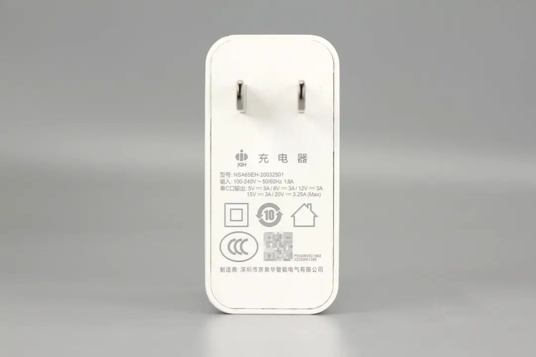 聯(lián)想這款充電器采用白色機身,固定插腳,標準的配機充電器設計。充電器支持65W PD快充,得益于通用的USB PD接口,這款充電器除了為配套的投影儀供電外,還能為筆記本供電,十分方便。