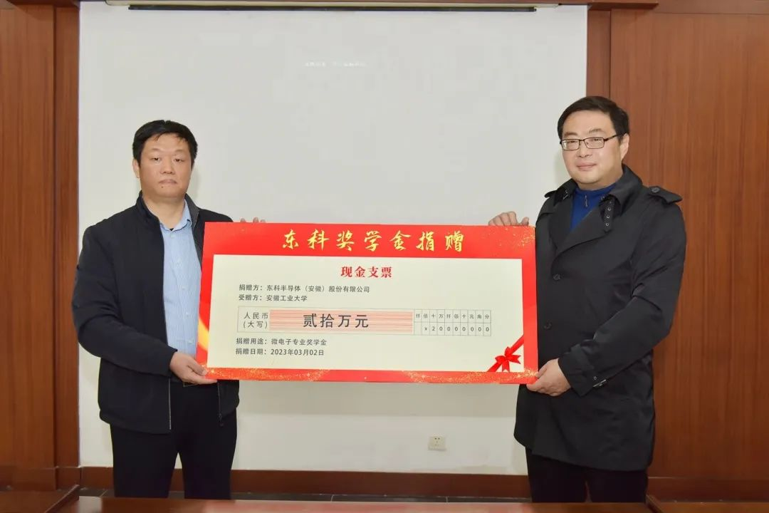 2023年3月8日下午,東科半導體(安徽)股份有限公司和安徽工業(yè)大學共建聯(lián)合實驗室揭牌儀式暨東科專業(yè)獎學金捐贈儀式在安工大佳山校區(qū)隆重舉行。