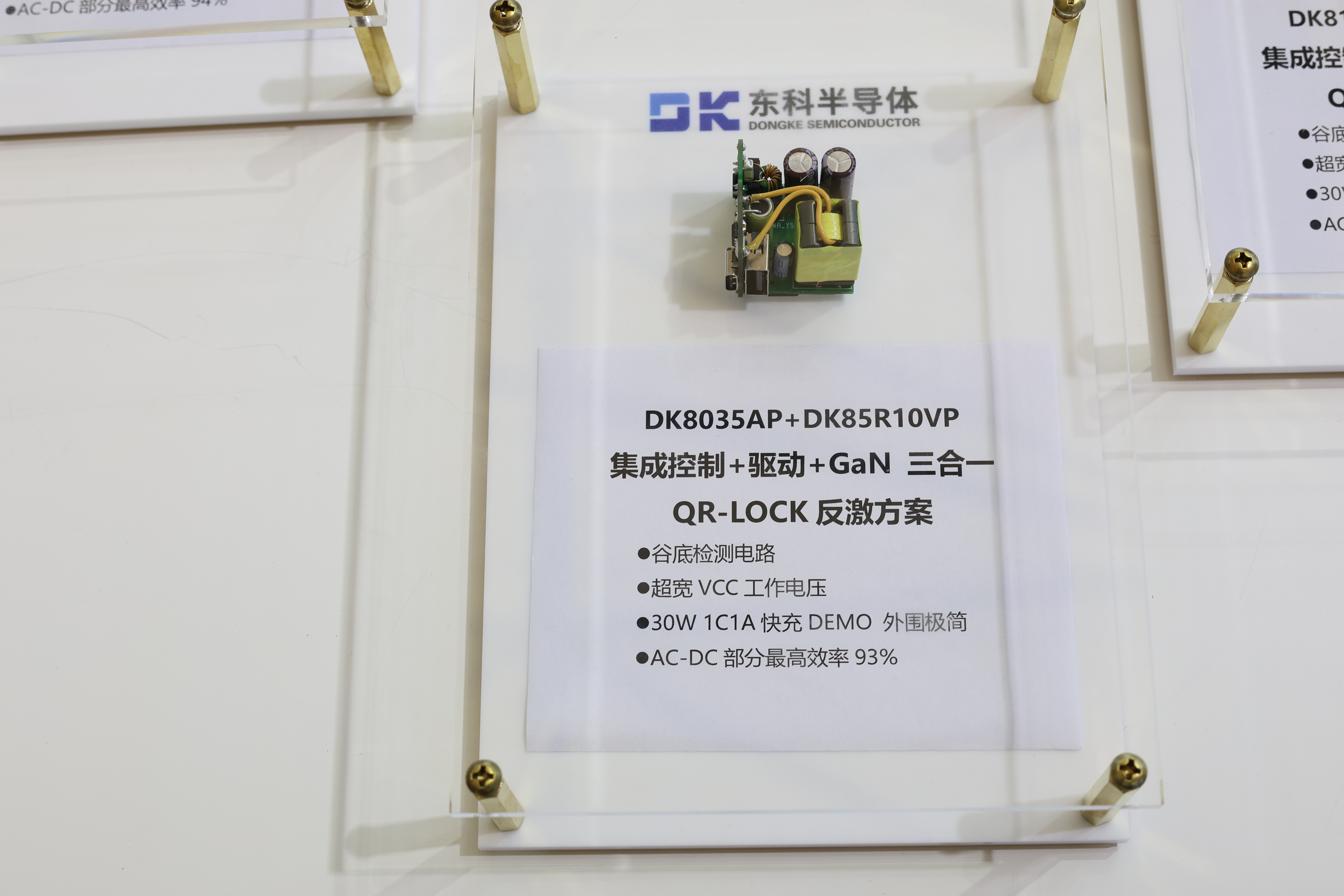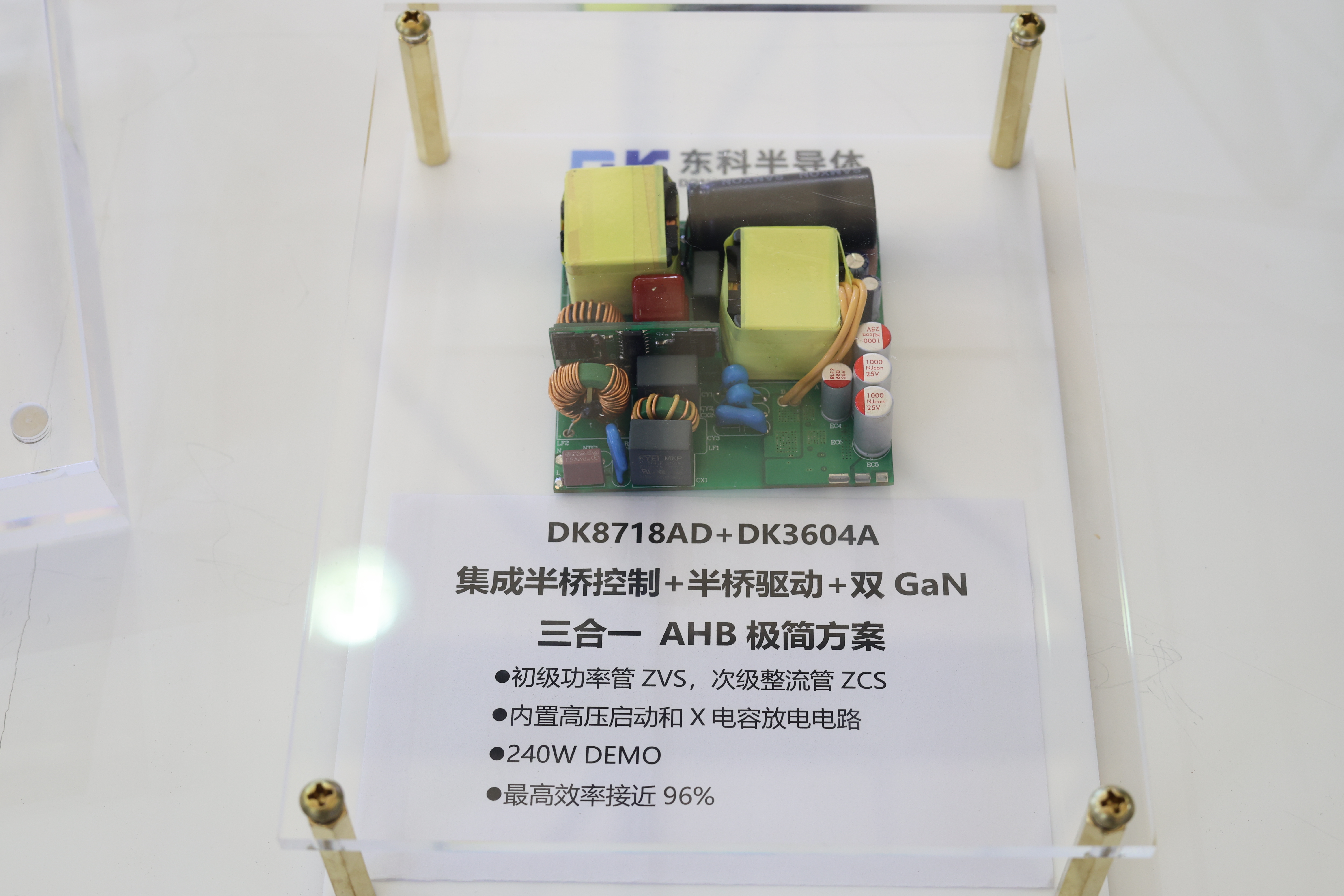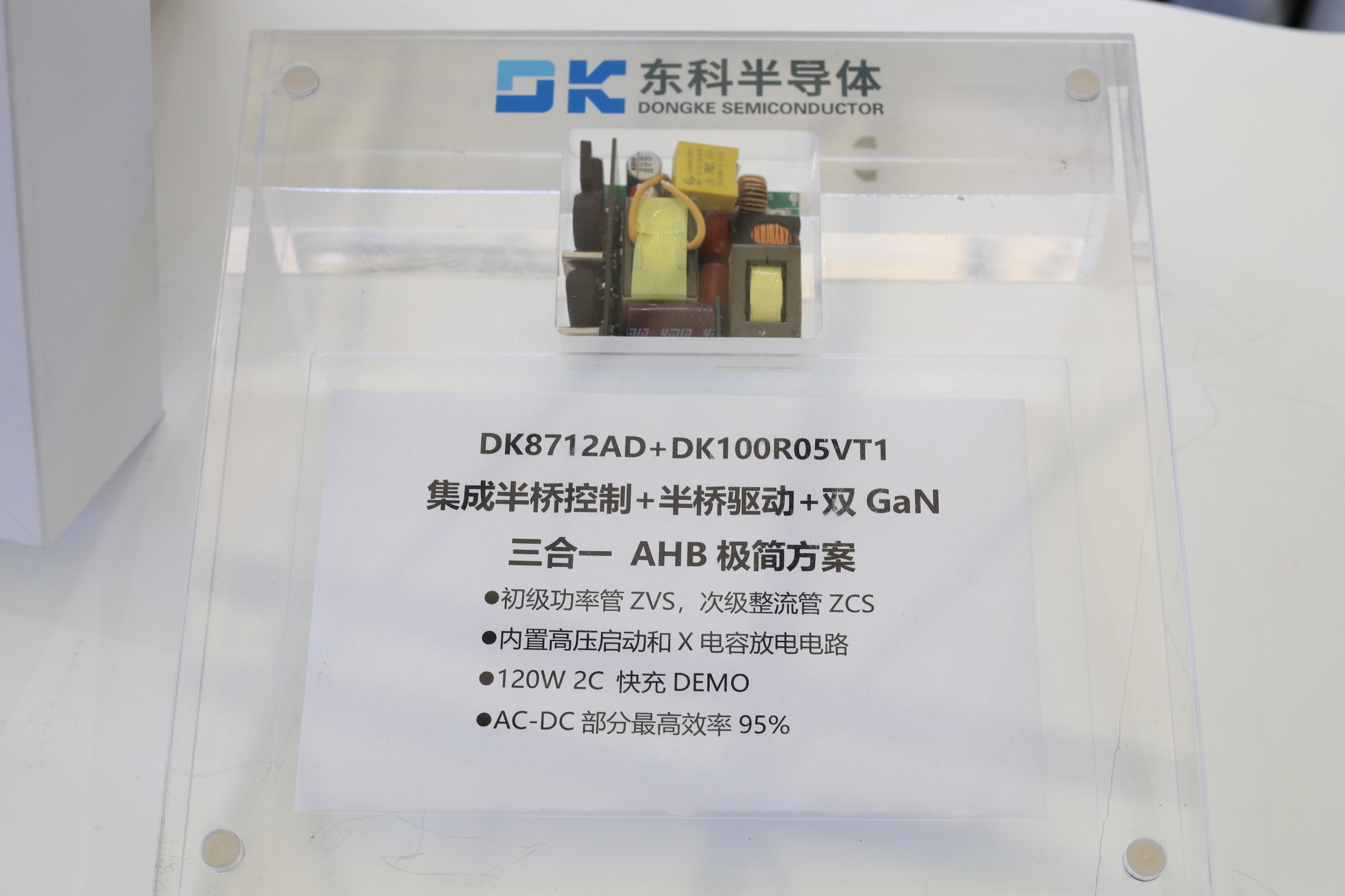 此次重磅展出了東科全新All-in-One全合封氮化鎵AC-DC電源管理芯片(不對稱半橋系列/有源箝位反激系列)。作為市面唯一的All-in-One全合封不對稱半橋解決方案DK87XXAD,有源箝位反激解決方案DK86XXAD。芯片采用三合一設計,單芯片集成AHB/ACF控制+半橋驅(qū)動+半橋GAN器件,實現(xiàn)了優(yōu)異的總線控制功能,提供卓越的性能和效率。